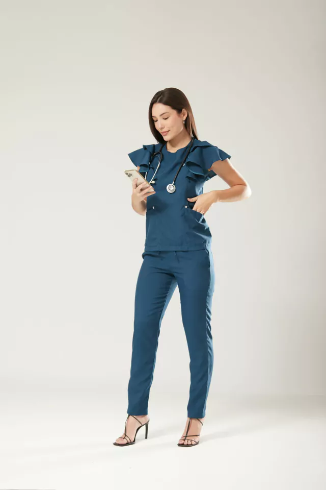 E vamos de Scrub Aline? Produzido em tecido com uma textura mais suave e leve, sua composição é 100% poliéster, proporcionando conforto, frescor e claro, praticidade.
